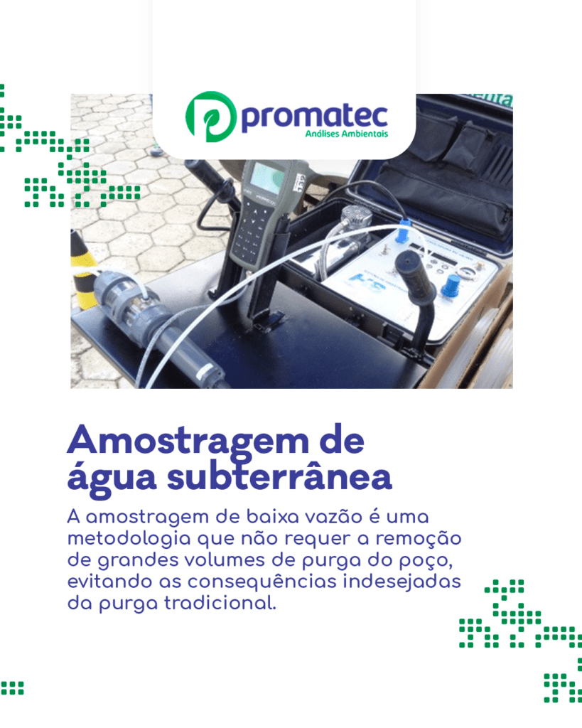 A PROMATEC tem seu escopo de amostragem acreditado na ABNT NBR ISO/IEC 17025 para realizar amostragens de água subterrânea em poço de monitoramento, poços piezométricos por baixa vazão e bailer e poços de captação com amostragem realizada com ou sem bomba.